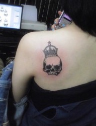 女性肩部皇冠骷髅刺青