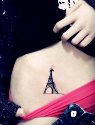 女性肩部巴黎埃菲尔铁塔漂亮刺青
