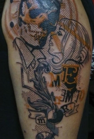 点画风格色的令人毛骨悚然的夫妇纹身图案