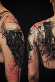 肩部素描风格的彩色大鸟纹身图案