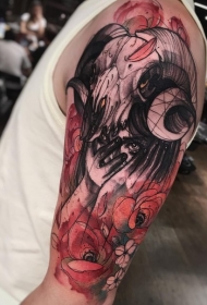 彩色神秘色恶魔花朵纹身图案