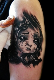 全新风格彩色风格黑灰娃娃哭纹身图案