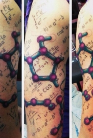 手臂奇妙的彩色化学与公式纹身图案