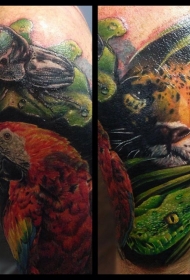 肩部现实主义风格的彩色动物纹身图案