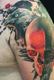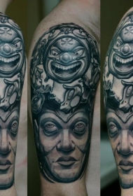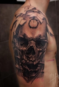 旧货风格肩部黑灰古代部落骷髅纹身图案
