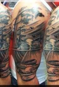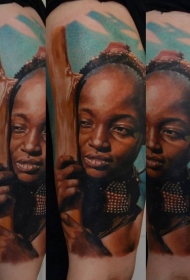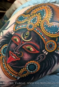 现实主义风格的彩色肩部古代部落人类纹身图案