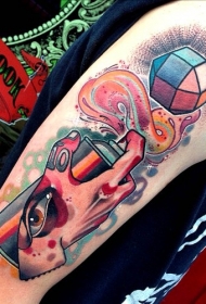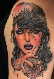 新的学校风格彩色恶魔女巫骷髅纹身图案
