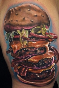肩部彩色现实主义风格巨大的汉堡纹身图案