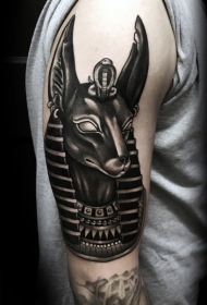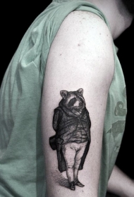 手臂雕刻风格的黑灰小浣熊先生纹身图案