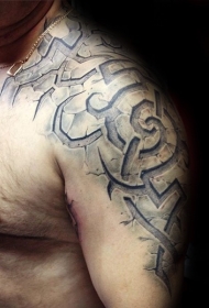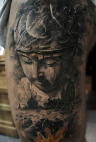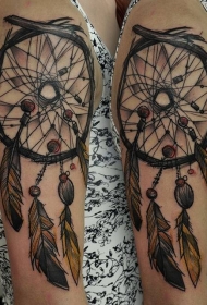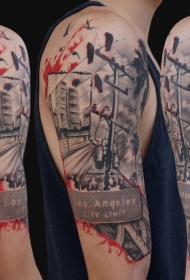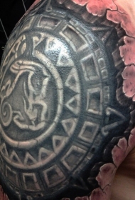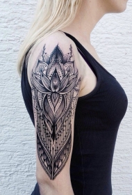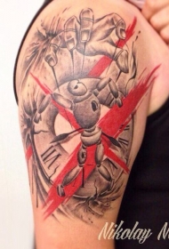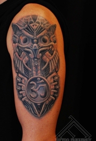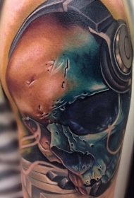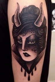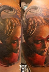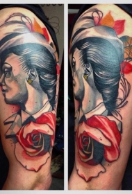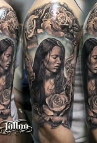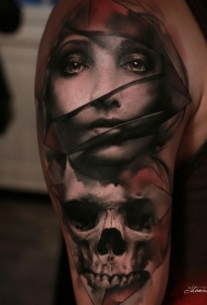 肩部有趣的彩色神秘女人与头骨纹身图案
