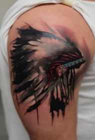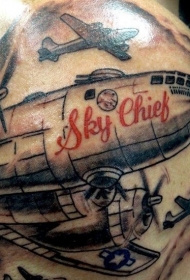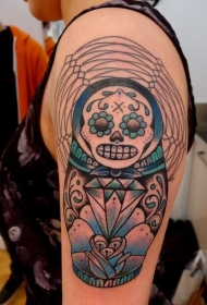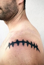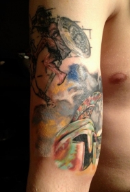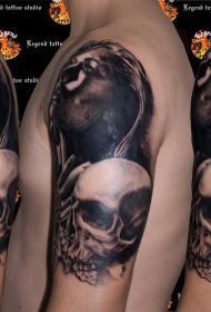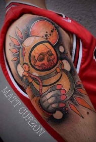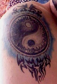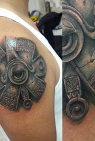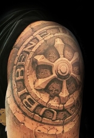 肩部黑灰色伊卡洛斯与太阳纹身图案
