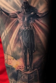 复古照片风格伊卡洛斯雕像与太阳纹身图案