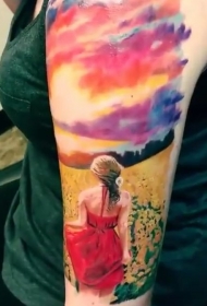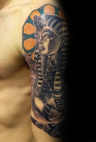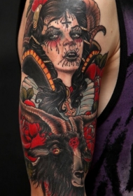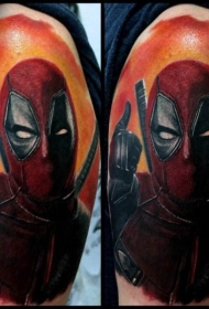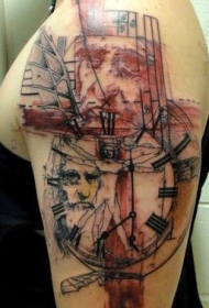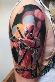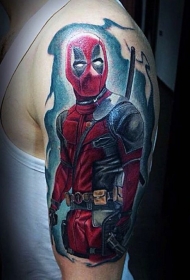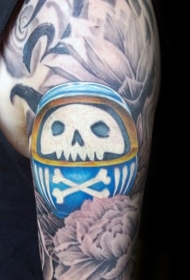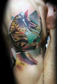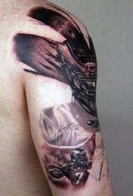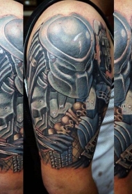 肩部彩色带有人类头骨的铁血战士纹身图案