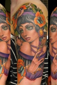 肩部新风格的彩色神秘女子肖像纹身