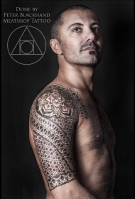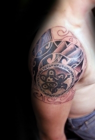肩部黑棕色诱惑吸烟的女人纹身图案