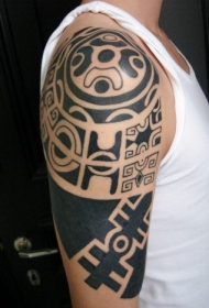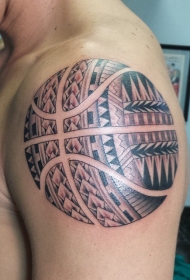 腿部黑色玻利尼西亚风格大鲨鱼纹身图案