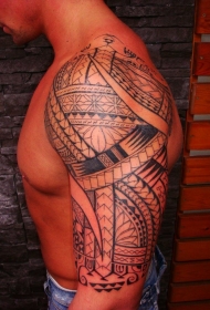 肩部现代风格的彩色鲨鱼与章鱼纹身图案