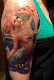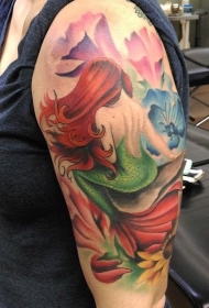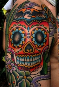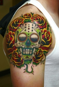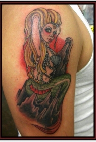 肩部墨西哥传统风格吸烟妇女纹身图片