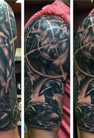 肩部狩猎主题的彩色人与鸭纹身图片