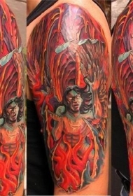 肩部彩色插画风格神秘恶魔纹身