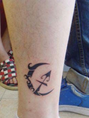 脚踝上黑色简单个性线条纹身励志纹身符号图片