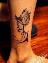 女人小腿唯美潮流的黑白彼岸花纹身图片