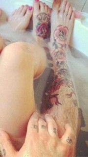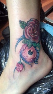 情侣脚部彩色玫瑰藤蔓爱情纹身