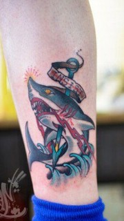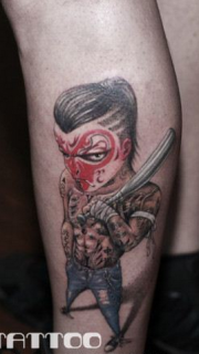 腿部拿着棒球棍的肌肉孙悟空纹身