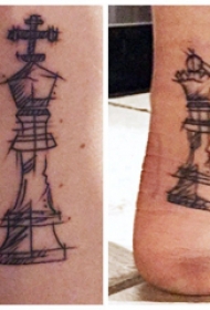 简易纹身素描 男生脚踝上黑色的象棋纹身图片