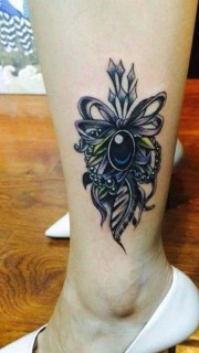 女性脚踝漂亮的宝石蝴蝶结纹身