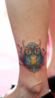 可爱猫头鹰脚踝纹身