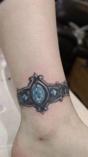 女孩子腿部一款宝石脚环纹身图案