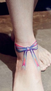 脚踝好看的七彩蝴蝶结纹身图案
