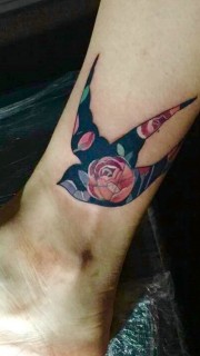 小脚处穿花衣的燕子纹身