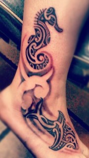 脚踝时尚的海马图腾纹身
