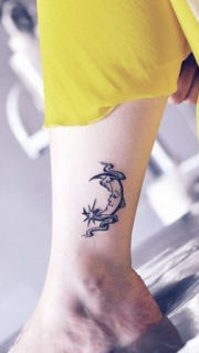 女生腿部精美的图腾月亮纹身图案