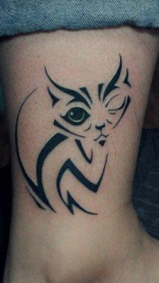 腿部风尚新潮的图腾猫咪纹身图案