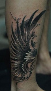 小腿黑白风格翅膀纹身图案