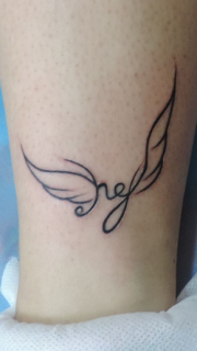 小腿上精致的小翅膀纹身图案