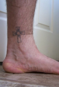 简约的十字架脚踝纹身图案