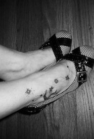 黑白月亮星星脚踝纹身图案