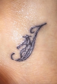 男生脚踝上黑色简单线条字母和人物纹身图片