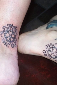 两个轮子和字母脚踝纹身图案