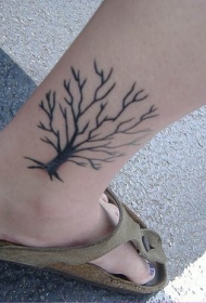 无叶的黑色大树脚踝纹身图案