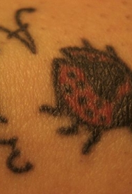 彩色的瓢虫和字母脚踝纹身图案