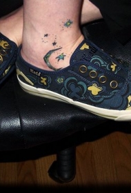 蓝色的月亮和星星脚踝纹身图案