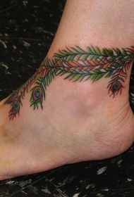 孔雀的羽毛彩色脚踝纹身图案