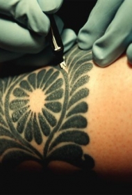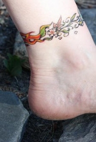 灰色的藤蔓蜻蜓脚踝纹身图案