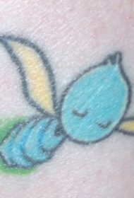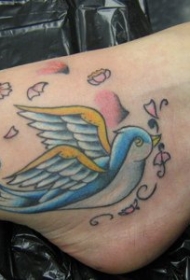 飞行的蓝色和黄色小鸟脚踝纹身图案