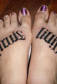 脚背黑色风格花体字母纹身图案
